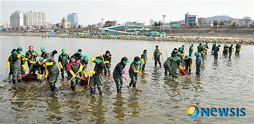 【서울=뉴시스】박세연 기자 = 15일 오전 서울 중랑천 상계교 창동교 구간에서 새마을운동중앙회(회장 이재창) 새마을지도자와 참석자들이 새봄맞이 하천 대청소를 하고 있다. psy5179@newsis.com