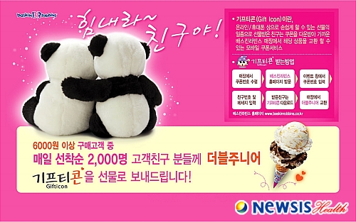 행사 기간 중 배스킨라빈스 매장에서 6000원 이상의 제품을 구매하면 선착순 2000명의 고객을 대상으로 '더블주니어 아이스크림 기프티콘'을 증정한다.