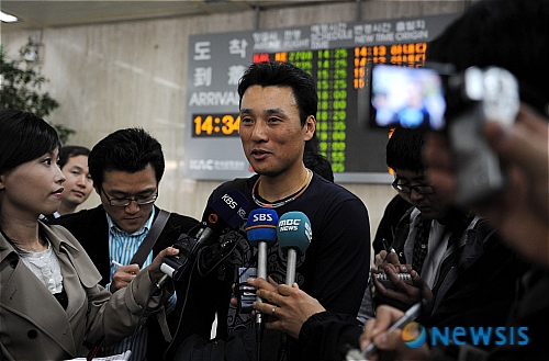 일본시리즈에서 부진을 면치 못한 요미우리 자이언츠 이승엽이 11일 오후 김포공항을 통해 입국하고 있다. 이승엽은 지난 10일 도쿄에 위치한 구단 사무실을 방문해 내년 WBC 대회에 한국 대표로 참가하지 않겠다는 뜻을 밝혔다고 11일 전했다. 또 2009년 시즌을 위해 이달 안에 재활 훈련에 전념하겠다는 계획을 나타냈다.