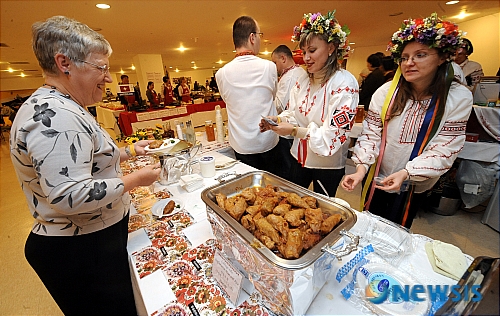 18일 오전 서울 홍은동 그랜드힐튼호텔에서 열린 SIWA(서울국제여성협회) 바자회에서 각 국 회원들이 한우 등 나라별 요리들을 선보이고 있다. 이번 바자회의 전액은 불우한 이웃을 위해 기부된다.