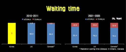 서울대학교 의과대학 윤영호, 노동영, 허대석 교수팀이 지난 2001년부터 2005년까지 위암, 대장암, 직장암, 췌장암, 폐암, 유방암 등 6대 암수술을 받은 14만7682명 환자의 5년 생존율을 분석한 결과, 암 진단 후 1개월 이상 수술을 기다린 환자는 1달 이내에 수술을 받은 환자에 비해 사망률이 증가했다고 23일 발표했다.
