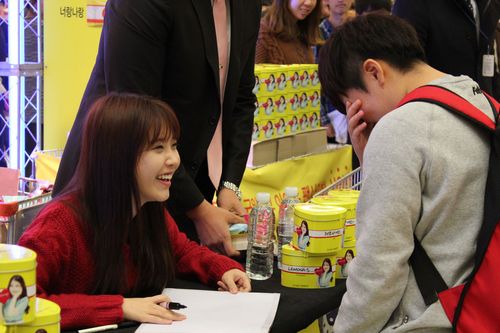 이날 팬 사인회는 평일 오후에 열렸음에도 불구하고 500여 명의 팬이 몰려 아이유의 인기를 실감케 했다.
