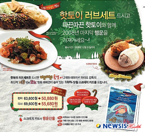 행사기간 중 '핫토이 러브세트'를 주문하면 핫토이 2개와 함께 씨부드바 식사권, 미야자키 하야오 감독의 최신작 '벼랑위의 포뇨' 영화 예매권과 스파클링 와인 시음을 할 수 있는 100% 당첨 스크래치 카드를 제공한다.