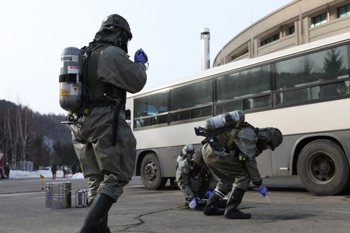 이어 군 대테러작전부대는 ▲EHCT(위험성 폭발물 개척팀) 투입과 미상의 가방확인 ▲공군 제8전투비행단 EOD반(폭발물 처리반) 투입과 미상의 폭발물 처리 ▲선수단 셔틀버스에 탑승한 테러범들의 인질테러 진압 ▲화학물질 유출 제거와 환자 후송의 순으로 진행됐다.