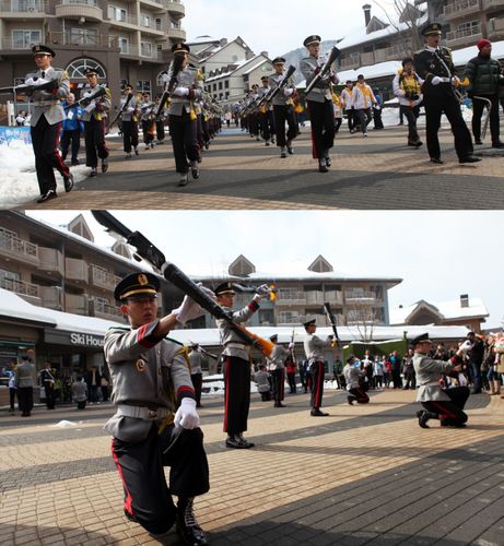 ▲ 30일 36사단 의장대ㆍ군악대 장병들이 평창 알펜시아 리조트에서 평창 동계스페셜올림픽을 맞아 퍼레이드를 펼치고 있다. (사진=36사단 제공) 최성훈 기자 cshoon@newsin.co.kr