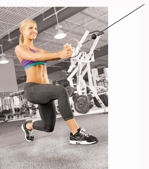 4. 한 다리를 뒤로 뻗고 양쪽 무릎을 굽혀 런지 자세를 취한다.