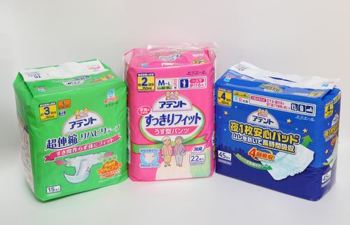 제품별로는 ▲팬티형(슬림형, 사각슬림형, 장시간용) ▲테이프형, 패드형(팬티용, 취침용, 일자형, 묽은변용) 등 모두 20 종으로 배뇨량, 신체 치수 및 성별에 따라 선택 가능하다.