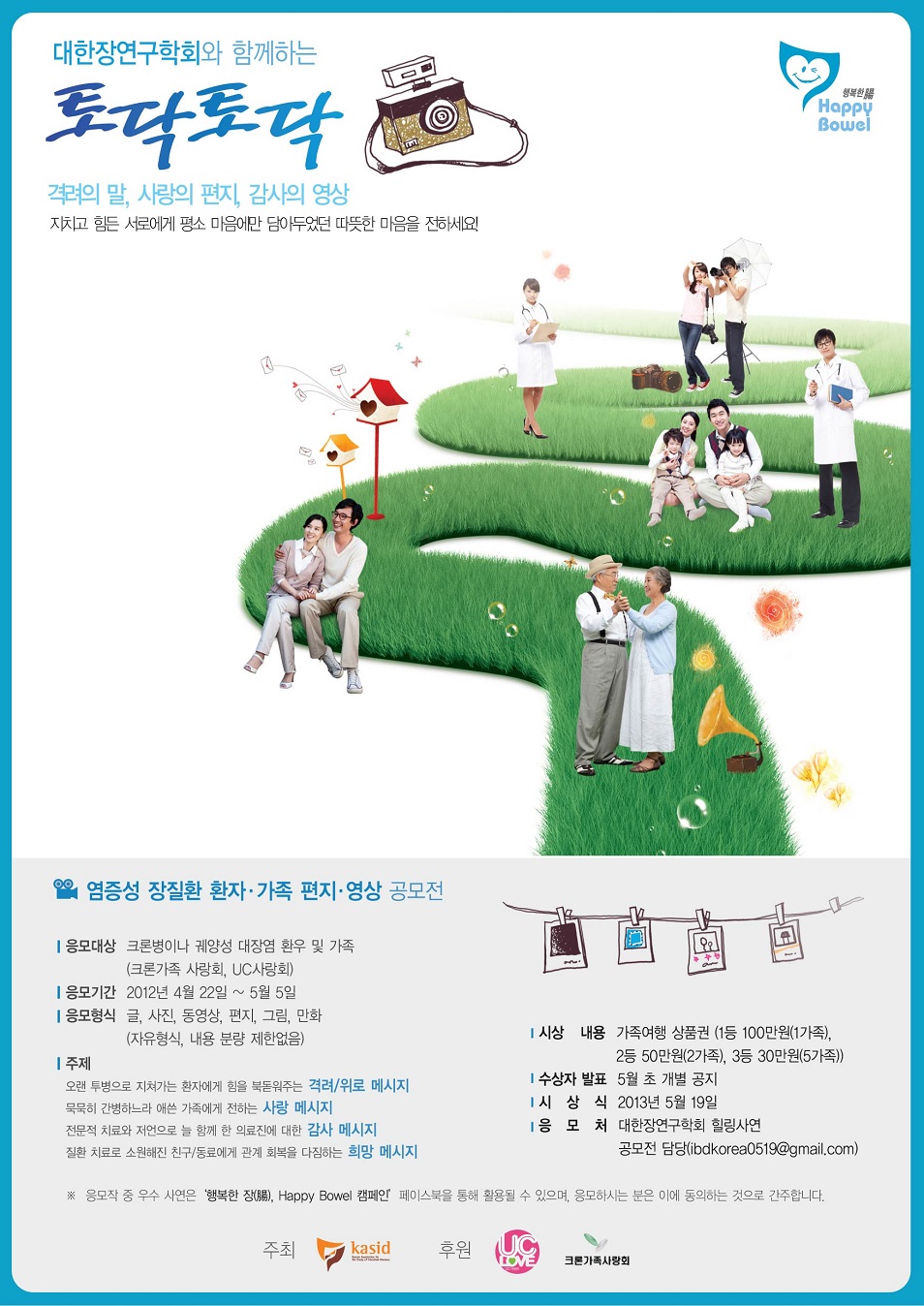 대한장연구학회 힐링편지 공모전 담당자 이메일(ibdkorea0519@gmail.com)을 통해 접수 받으며, 수상자는 5월 초 개별 공지할 계획이다.