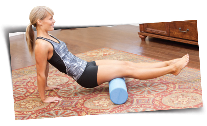 둔근 가운데에서 무릎 바로 위쪽까지 롤러를 굴린다.