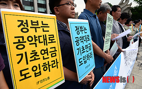 한편 전국민주노동조합총연맹과 국민연금바로세우기국민행동(연금행동) 등은 공약 후퇴 등을 이유로 기초연금 정부안에 반발하고 있다.