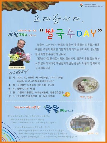 우리복지(이사장 조수동)는 다문화가족을 위한 '쌀국수-데이(day)' 행사를 개최한다고 21일 밝혔다.