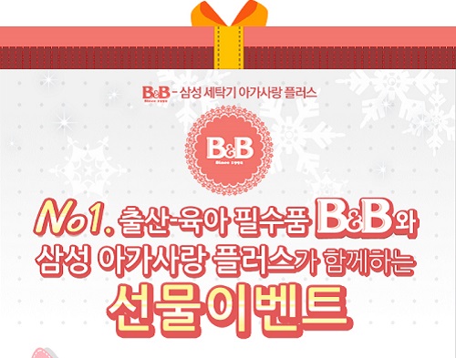 50만원 상당의 삼성 세탁기 아가사랑 플러스와 비앤비 유연제을 추첨을 통해 증정한다.