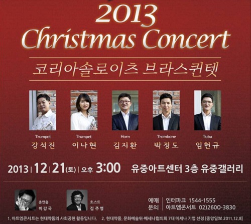 코리아솔로이츠 브라스퀸텟은 이날 공연을 위해 'Jingle bells', 'We wish you a merry christmas'등 대표적 크리스마스 캐롤을 프로그램에 포함해 관객에게 크리스마스의 감동과 낭만을 선사할 예정이다.