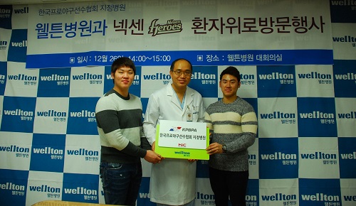 웰튼병원은 넥센 선수단 3명이 병원을 방문해 인공관절수술 환자의 빠른 쾌유를 기원하는 행사를 가졌다고 27일 밝혔다.