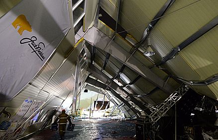 사고 당시 체육관에 있었던 재학생 김모(20)군은 "지붕에서 '지지직'하는 소리가 나더니 무대 위 지붕이 내려앉기 시작했다"며 "이후 조명이 꺼지고 지붕이 붕괴됐다"고 설명했다.