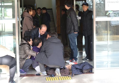 【서울=뉴시스헬스】 대한암환후 협회원 이병관씨가 옻나무 사용 한약재 특허권 침해금지의 경고장을 발송했던 나천수 씨의"내년에 내가 약을 제조 및 판매하려고 경고장을 보냈다"는 발언으로 국립산림과학원 입구에서 항의하고 있다.이에 함께 항의 방문한 암환우협회 회원들이 이병관 씨를 위로하며 달래고 있다. 이재승 보건복지전문 기자 jasonlee@newsin.co.kr