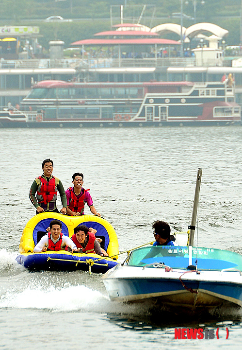 서울 낮 최고 기온이 26도까지 올라가며 연일 초여름 날씨가 이어지고 있는 지난 8일 오후 서울 광진구 자양동 뚝섬유원지에서 시민들이 수상레포츠를 즐기며 더위를 식히고 있다.