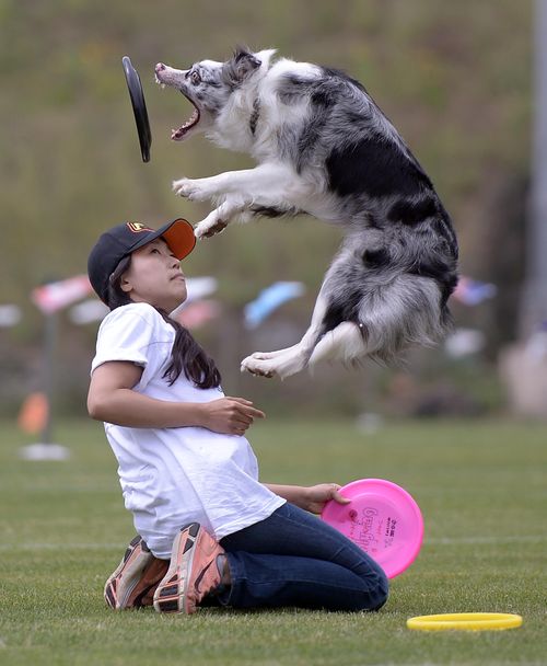 지난 8일 오후 인천 문학경기장 보조경기장에서 열린 제2회 스카이하운즈 세계대회 한국예선전 프리스타일 부문에 참가한 견주와 견공이 멋진 실력을 뽐내고 있다.