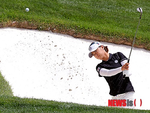 지난 24일(현지시각) 미국 동부 메릴랜드주 볼티모어에 위치한 캐이브스 밸리 골프코스에서 열린 인터내셔날크라운 1라운드 9번홀에서 최나연이 벙커샷을 하고 있다. (사진=하나금융그룹제공)