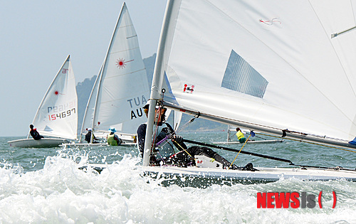 지난 27일 오전 부산 해운대구 수영만요트경기장 앞바다에서 열린 '제15회 부산시장기 전국요트경기대회'에 참가한 선수들이 바람을 이용해 바다를 질주하고 있다.이 날까지 사흘 동안 펼쳐진 이번 대회에는 6개 종목에 걸쳐 80여 척(100여 명)의 요트가 참가해 기량을 겨뤘다.