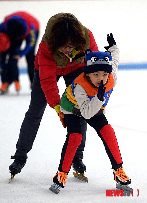 서울의 낮 최고기온이 30도까지 오르는 등 무더위가 기승을 부린 지난 27일 오후 서울 노원구 하계동 동천재활체육센터 아이스링크장에서 어린이들이 스케이트를 즐기며 더위를 피하고 있다.