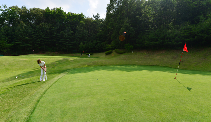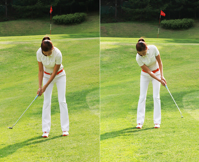 이러한 방법으로 스윙을 한다면 공은 3~5m정도 포물선을 그리며 그린에 떨어져 홀쪽으로 굴러갈 것이다.