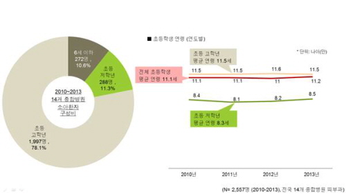 학년별 여드름 발병률은 1학년 20.2%, 2학년 22.5%, 3학년 27%, 4학년 39.7%, 5학년 48.9%, 6학년 54.1%로 4학년부터 여드름 발병률이 급격하게 높아져서 5~6학년 학생은 2명 중 1명이 소아 여드름 환자일 정도로 발병률이 높았다.