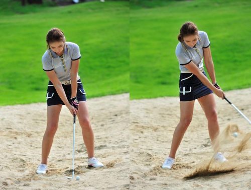 그 후 임팩트 때는 클럽을 땅으로 떨어뜨리는 다운스윙으로 폭발력이 가해져야 한다. 이때 반드시 손보다 클럽헤드가 먼저 가도록 팔로우스로 해주는 것이 중요하다. 손이 먼저 앞으로 나갈 경우 클럽헤드를 땅에 떨어뜨리기 힘들게 돼 탑핑을 칠 수 있다. 따라서 클럽을 땅으로 떨어뜨리는 다운스윙으로 클럽헤드가 손보다 먼저 팔로우스루 되는 것이 중요하다.