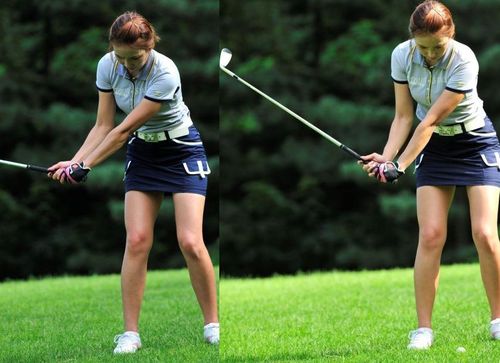 공을 띄우려고 스윙을 들어올리게 되면 탑핑이 나올 수 있기 때문에 공 뒤로 클럽을 떨어뜨린다는 느낌으로 스윙한다.