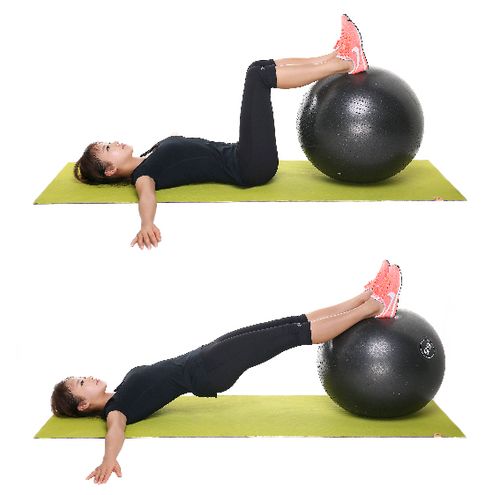 2. 발뒤꿈치를 짐볼 중앙에 살짝 올려놓는다.