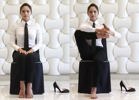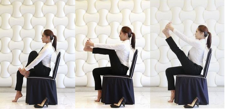 1. 신발을 벗고 척추를 바르게 펴고 앉은 상태에서 한쪽 발끝을 당겨 다리를 가슴 앞에 들어올린다. 이때 등이 따라 굳어지지 않도록 주의하면서 무릎과 발뒤꿈치의 높이를 맞춰 준다.