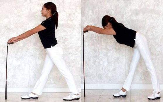 ◇골프채를 이용해 다리 벌려 상체 숙이기