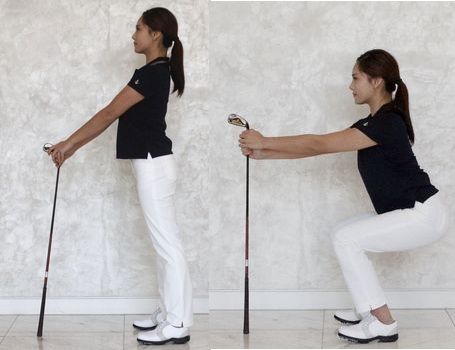 ◇골프채를 이용한 하체 근력 강화, '의자자세'