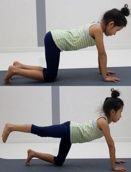 1. 어깨 아래에 두 손목, 골반 아래에 두 무릎을 두어 기어가는 네발자세를 취한다.