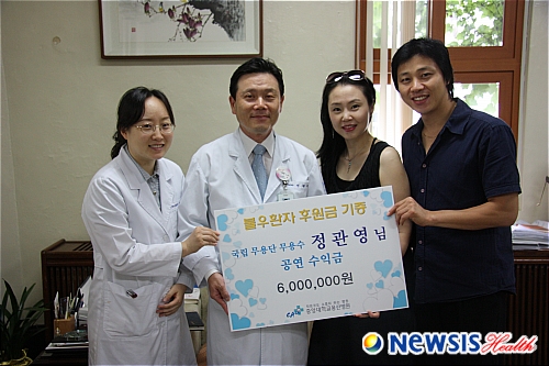 중대용산병원 민병국 병원장은 “힘든 공연활동을 통해 마련한 수익금을 어려운 환자를 위해 쾌척한데 대해 깊은 감사의 뜻을 전한다”며 “불우한 환자를 돕는데 요긴하게 사용하도록 하겠다” 고 말했다.