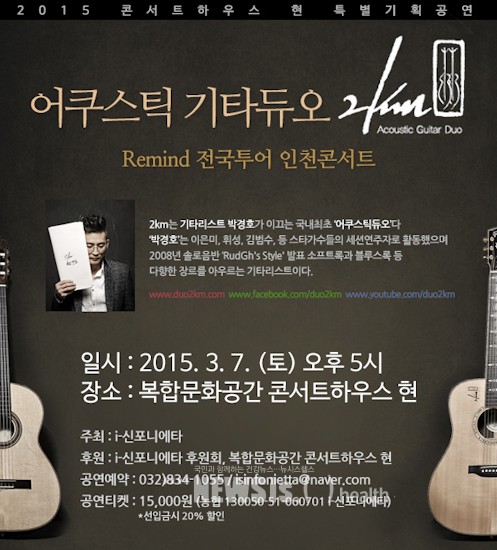 아이신포니에타(단장 조화현)가 오는 7일(토) 오후 5시 인천 중구 인현동 복합문화공간 콘서트하우스 현에서 어쿠스틱 기타 듀오 2km과 콜라보 기획공연을 선보인다.