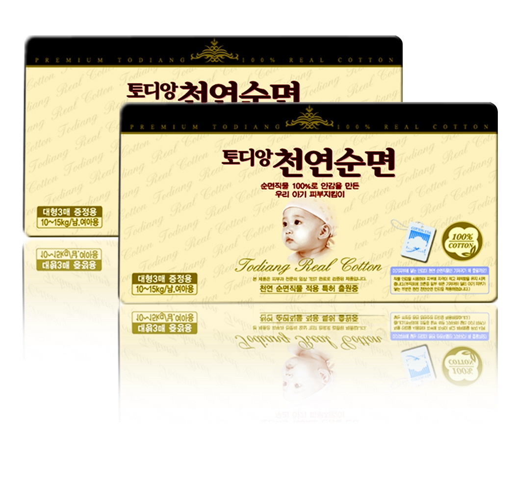 '토디앙 천연순면'은 부직포에 일부 코튼을 섞은 기저귀와 달리 아기 피부에 닿는 안감을 100% 천연순면으로 만들었다.