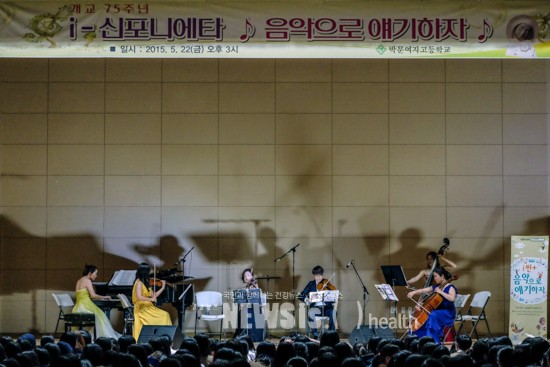 i-신포니에타(단장 조화현)가 22일 개교 75주년을 맞은 박문여자고등학교에서 찾아가는 음악공연 'i씬+음악으로 얘기하자' 공연을 펼쳤다.