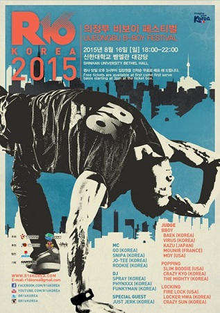 한국관광공사(사장 정창수)와 의정부시(시장 안병용)가 주최하고 문화체육관광부가 후원하는 'R16 KOREA 2015 의정부 비보이 페스티벌'이 오는 16일 오후 6시부터 경기 의정부시 '신한대학교 벧엘관 대강당'에서 개최된다.