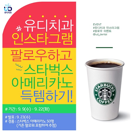 네트워크형 치과병원인 유디치과가 신규 SNS 채널인 인스타그램 공식계정(@ud_dental)의 개설을 기념하는 친구신청(팔로우) 이벤트를 오는 22일까지 진행한다고 10일 밝혔다.