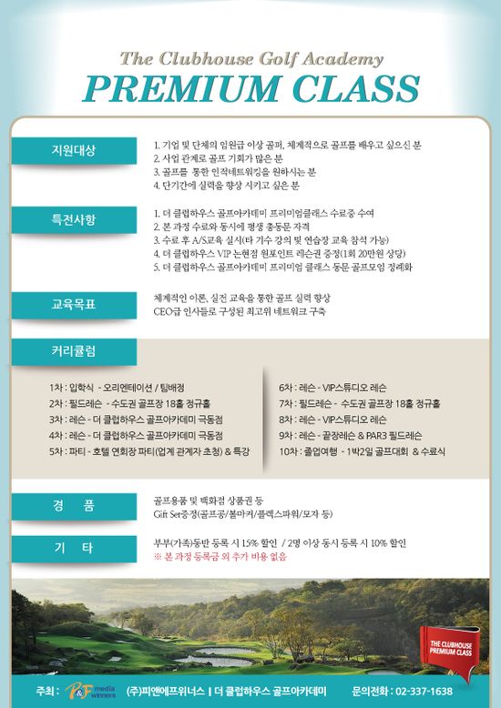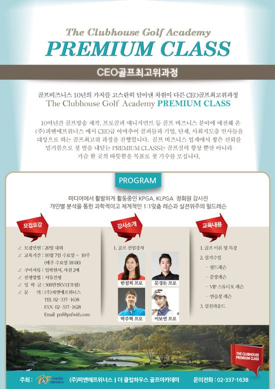 '더 클럽하우스 골프아카데미'는 최고경영자(CEO) 골프최고위과정 '프리미엄클래스(이하 더클럽하우스프리미엄 클래스)' 1기생을 모집한다.