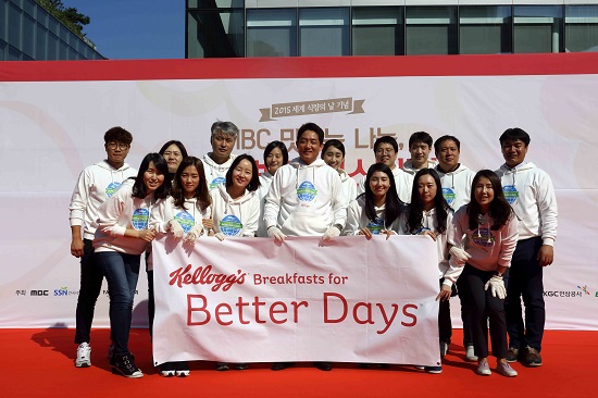 켈로그가 지난 13일 서울 상암동 MBC 본사에서 세계 식량의 날(World Food Day, 10월 16일)을 기념하여 시리얼 제품을 기부하며 봉사활동을 진행했다고 16일 전했다.