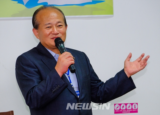 2일 오후 인천 제2 국제여객터미널에서 위동페리와 함께 하는 아름다운 동행 '2015 청소년 중국 역사문화 탐방' 출정식이 열려 전국소년소녀가장돕기시민연합회 이영훈 사무총장이 인사말을 하고 있다.
