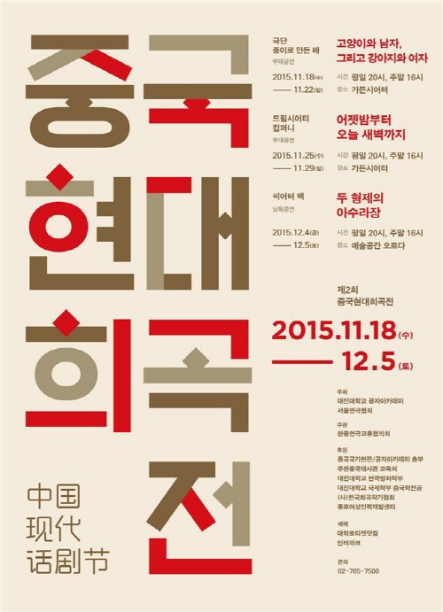 서울연극협회(회장 박장렬)와 대진대학교 공자아카데미(원장 김형기)가 지난해에 이어 올해에도 '2015 제2회 중국현대희곡전'을 공동 개최한다고 6일 밝혔다.