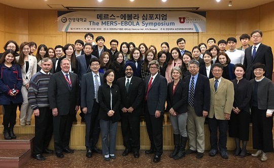 한양대학교 보건대학원과 미국 유타대학교 보건대학원은 지난 16일 한양대학교 박물관에서 '메르스와 에볼라의 경험을 통한 교훈으로 세계화 시대 감염병 유행을 어떻게 극복할 수 있는가'를 주제로 공동 심포지엄을 개최했다.