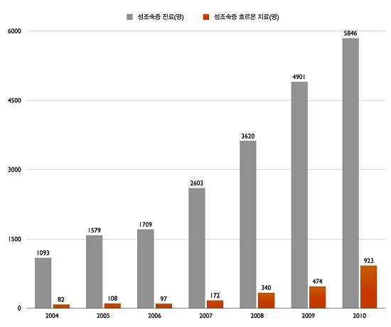 진료 인원도 2004년 1018명에서 2010년 5573명으로 5배 이상 급증했다.