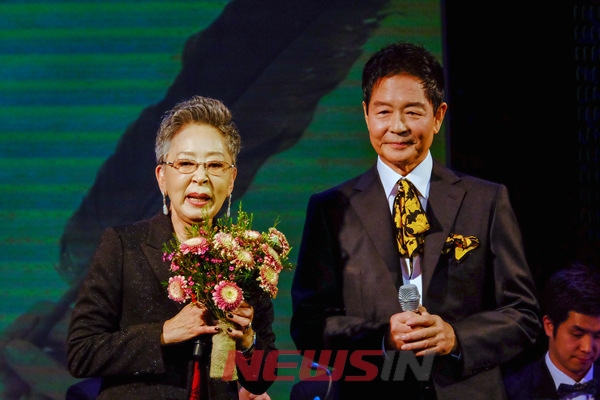 17일 저녁 서울 중구 필동 반얀트리 호텔에서 가수 진성만(74)의 생애 첫 단독 콘서트 'Forever Friend'가 열린 가운데 행사 주최자 김지미 씨(왼쪽)가 인사말을 하고 있다.