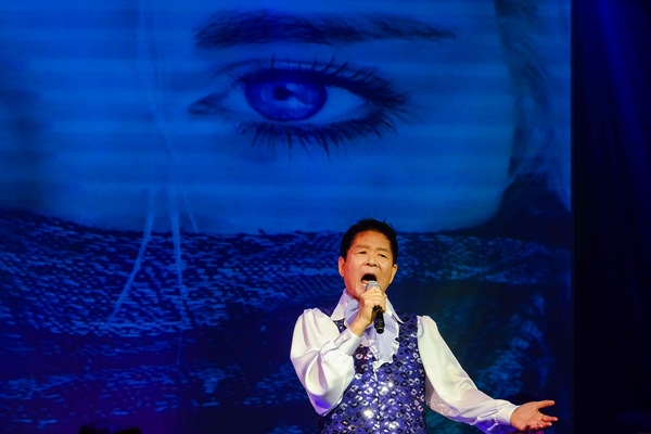 17일 저녁 서울 중구 필동 반얀트리 호텔에서 가수 진성만(74)의 생애 첫 단독 콘서트가 열린 가운데 진성만이 '스패니시 아이즈(Spanish Eyes)'를 스페인어로 부르고 있다.