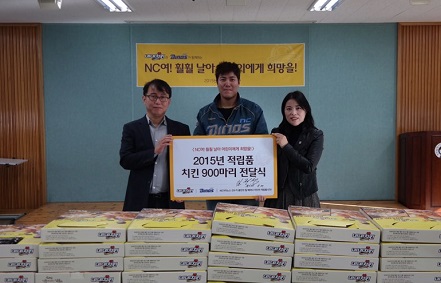 [뉴스인] 최문수 기자 = 네네치킨(㈜혜인식품, 대표이사 현철호)이 NC다이노스와 '사랑은 온도계 시즌3, NC여! 훨훨 날아 어린이에게 희망을!' 캠페인을 통해 적립된 치킨을 학대아동과 소년소녀 가장 등 소외된 계층들의 보금자리인 경남아동보호전문기관에 지난 27일 전달했다고 30일 전했다.