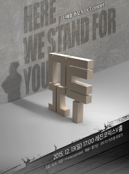 넥스트는 오는 13일 서울 서교동 레진코믹스 브이홀에서 'Here, We stand for you'라는 타이틀로 신해철 추모 연말 공연을 개최한다.